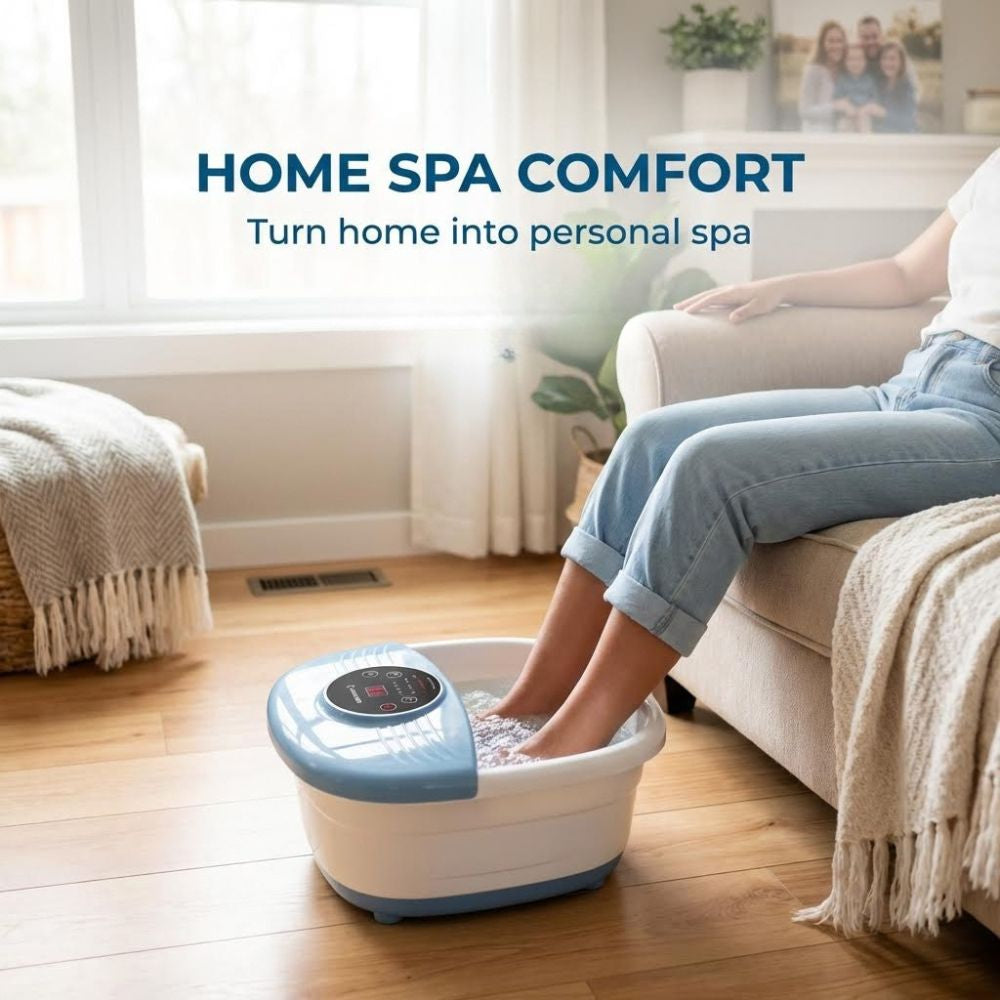 Enjoy the benefits of a foot soak spa anytime—relieve pain, improve circulation, reduce stress, and pamper your feet with this foot spa massager with heat, bubbles, and rollers. The perfect gift for self-care, wellness, or anyone who deserves relaxation.